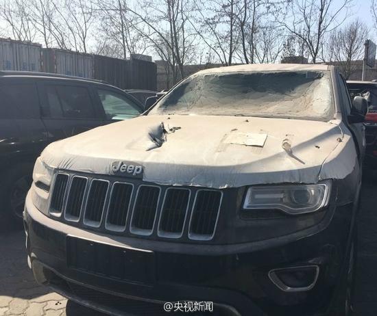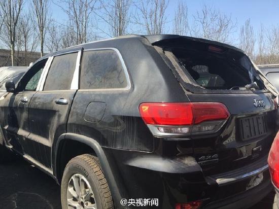 在天津滨海新区的中电物流停车场,记者看到一批受损的切诺基正以五折的价格对外出售。这些车的玻璃都已破碎,车体严重受损,车内后视镜也已脱落。卖车人告诉记者,这些车修好的卖40万,没修的卖33万,曾一天就卖出了四百多台。