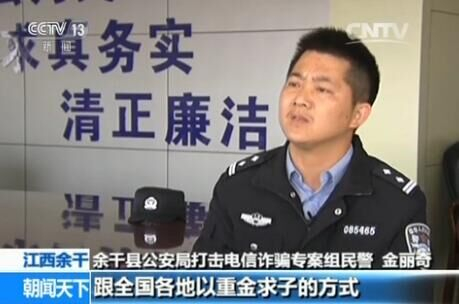 余干县公安局打击电信网络新型违法犯罪专案组民警金丽奇:她打电话,在全国各地以重金求子这种方式进行诈骗,后来跟人家索要钱财,所以我们觉得这个人可能是在作案的重金求子诈骗犯罪嫌疑人。