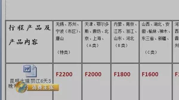 唐经理还给记者发来了一张地接社内部成本地接表格,全国不同省市地区的游客被分为A到G共七个等级。以表格中A类的游客为例,正常到昆明、大理、丽江的六天五晚常规火车旅游的成本就要2000元,但是地接社不仅不收取组团社一分钱的费用,反而倒贴给组团社每人1000元。这样一来,组团社除了团费收入以外,每名游客又多赚了1000元,而地接社每接一名游客,就等于承担了2000元的旅游成本外加1000元的“人头费”,平均每个人的费用相当于3000元。
