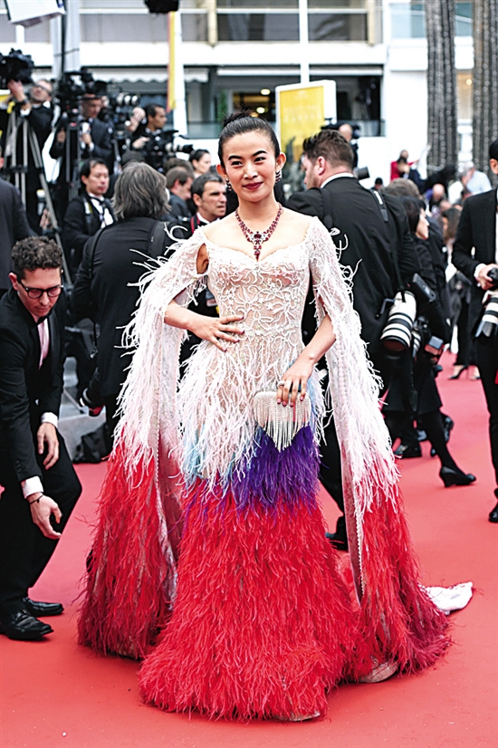 曾经主演过新版《星语心愿》的董维嘉,穿“霞披”亮相戛纳红毯。还有演了《芈月传》的毛俊杰,以及穿仙鹤装在《夏洛特烦恼》里演女二号的王智。最后还有一个很奇葩的穿得像火鸡一样的连记者都认不出来的女明星,后来才知道她是赵尔玲,毕业于北京电影学院表演系2002级,与江一燕、刘亦菲是同班同学。