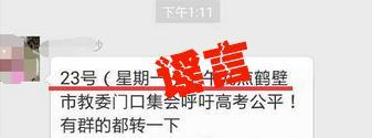 网传“23日上午到焦作市教委门口集会呼吁高考公平”,并称“公安出动警力引导游行”,纯属谣言!
