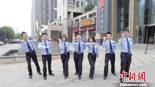 “阿鑫哥”与同事一起表演《小太阳通讯诈骗防范歌》 唐娟 摄