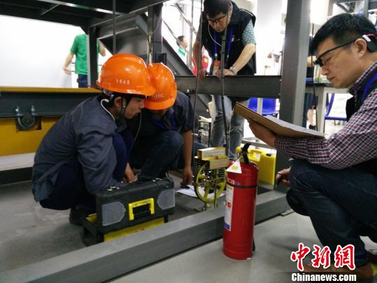 中新网南京6月16日电 (记者 钟升)16日,全国第二届电梯维修工职业技能竞赛南京决赛拉开帷幕。来自南京地区64名专业电梯维修技术工人将进行为期三天的理论与实践比拼。除了维修技术外,安抚乘客等项目也在考察范围内。
