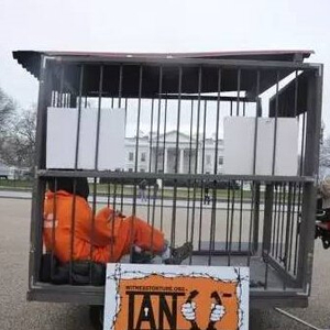 美国民众把自己关进牢笼,抗议虐囚。