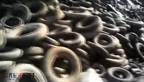 在这个庭院里,记者注意到,这里占地上千平方米,一进大门的右侧,200多米长的路上,堆满了黑色橡胶垃圾。记者随手拿起一个废弃的橡胶,张老板立即走上来,开始给我们进行讲解。“这所有的东西,黑的东西,你看他院里所有黑的,都能打成颗粒。”