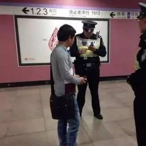 图:警察在地铁口查验身份证。