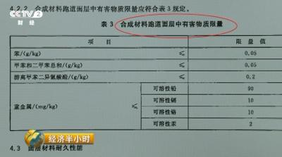 央视财经《经济半小时》报道:包括大型体育场馆、大众健身、以及校园内的跑道主要分为两种,一种是专业体育场馆铺设的预制型塑胶跑道,它以橡胶为主 要原料,材质昂贵,提前由专业生产厂家在工厂内,按照场地尺寸,提前制作,然后铺设在专业的体育场馆中。另外一种就是目前大部分学校操场上铺设的透气型塑 胶跑道。这种跑道施工简单,原料由黑色的塑胶颗粒组成,在学校水泥地上,由胶水混合塑胶颗粒之后,沾粘在水泥地面上,形成塑胶跑道。但无论是哪种塑胶跑 道,其施工使用的原料,都必须符合国家商品标示名称的规定,有明确的厂名厂址、有相关使用说明,更要有产品质量的检验合格证。