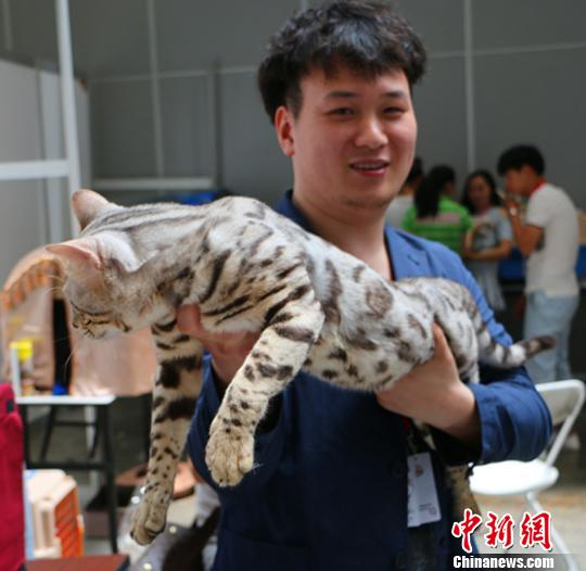 图为参赛选手展示他的猫咪。 耿丹丹 摄