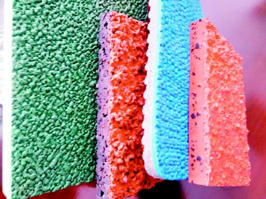 塑胶跑道不是全部有毒,预制型、全塑型、复合型、透气型是常见的几种类型,其中渗水型塑胶是最容易出问题的。 本报记者 摄