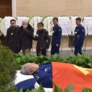 今年2月18日,阎肃遗体告别仪式在北京八宝山革命公墓举行,现场摆放着习近平献的花圈。