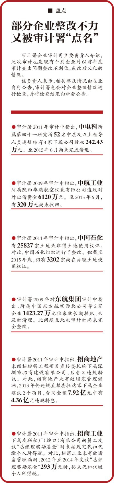 部分企业整改不力又被审计署“点名”