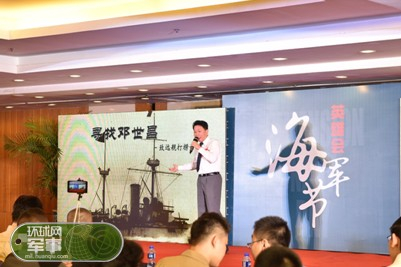 图为抗战史专家萨苏介绍专题片《寻找邓世昌》的打捞拍摄过程中的感人故事。