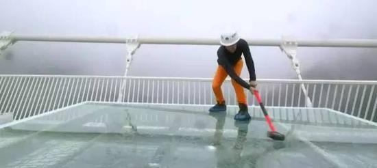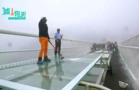 然后,BBC记者说,“张家界的造桥者想要向我证明玻璃桥的安全性”。(完全变成了师出有名,不得不服。)