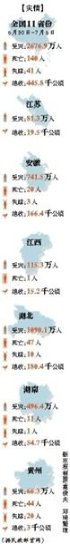 7月5日至6日,中共中央政治局常委、国务院总理李克强连续到安徽阜阳、湖南岳阳、湖北武汉考察长江、淮河流域防汛抗洪和抢险救灾工作。