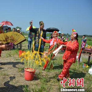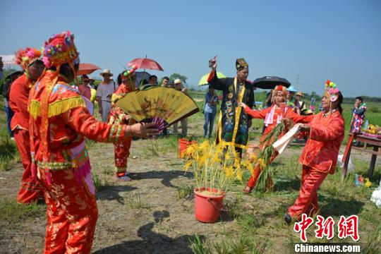 图为师公师婆正在做法事请稻神 林洁琪 摄