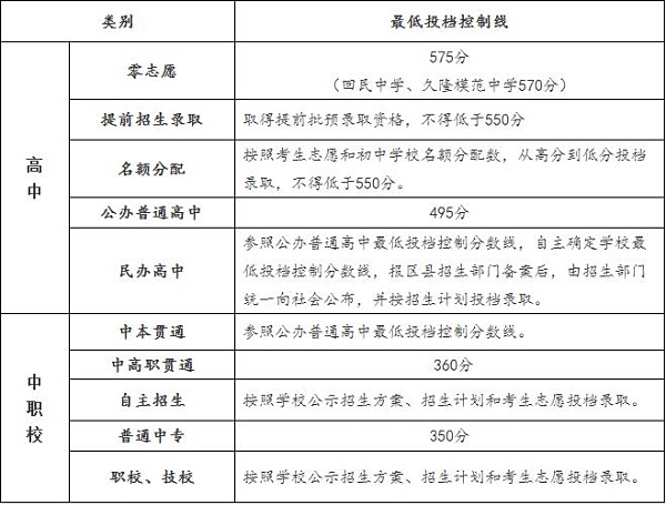注:各招生学校将按照公布的招生计划和填报志愿的考生成绩,按序投档,自然形成学校实际录取分数线。