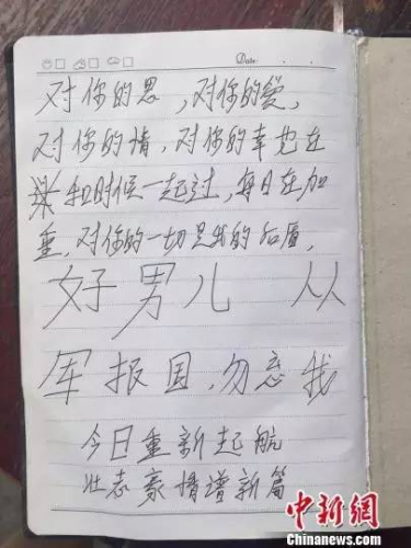 班长姜伟说,杨树朋的妻子曾带着年幼的儿子到部队看爸爸,他的儿子对每个穿军装的人都喊“爸爸”。因为,在孩子的模糊记忆中,对爸爸最清晰的印象就是——他穿着军装。
