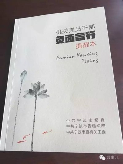 宁波下发党员干部负面言行提醒本:消减负能量