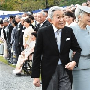 2015年11月12日,日本明仁天皇和皇后美智子在赤坂离宫御花园参加秋季游园会。图/视觉中国
