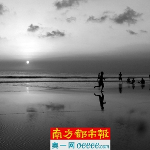 2016年1月8日,巴厘岛库塔海滩落日。作为印尼旅游盛地,巴厘岛吸引越来越多中国人旅游。 南方日报图