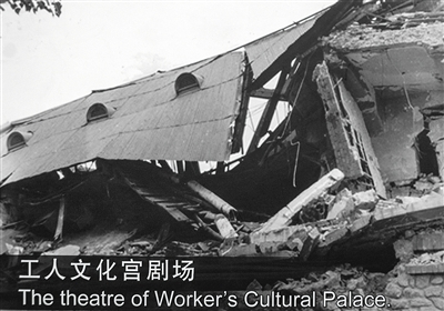 震后的唐山工人文化宫剧场。 翻拍自唐山地震博物馆