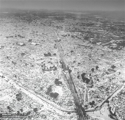 震后的唐山路北区。 翻拍自唐山地震博物馆