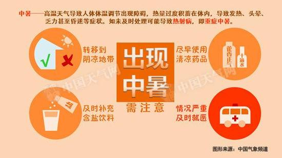 专家提示,高温将导致用电用水量增大,相关部门需做好水电供应和调度,保障城镇生产生活;另外,高温天气将导致人体免疫力下降,中暑可能性加大,户 外作业人员需注意防暑降温,相关部门需做好卫生防疫及应急处置工作;此外,南方持续高温天气对一季稻孕穗及蔬菜、果树生长不利,易导致晚稻秧苗灼伤,相关 部门要及时采取措施;同时做好城市和林区防火工作。