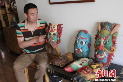 甘肃工艺师传承傩面艺术 雕刻远古传说中百张“面孔”