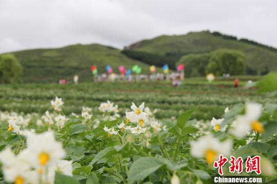 山西省国家级贫困县——吕梁市岚县正在改变原始、单一的土豆种植销售模式,进行产业供给侧改革,试图打造出一条土豆全产业链条。图为岚县河口乡的土豆花。 受访者提供 摄