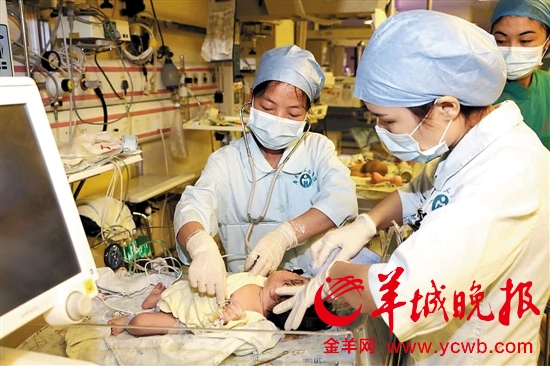 医务人员细心呵护病危宝宝 羊城晚报记者 汤铭明 通讯员 崔继雄摄