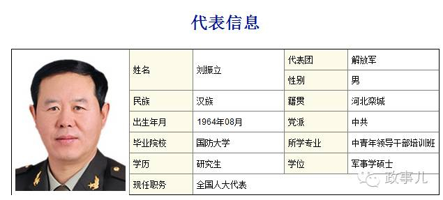 “政事儿”(微信ID:gcxxjgzh)注意到,刘振立还有一个身份——全国人大代表。据解放军报发自2013年3月9日的报道显示,当时,正在北京出席十二届全国人大一次会议的刘振立,突然在一天夜里给“大功三连”连长刘啸宏挂了一个电话。
