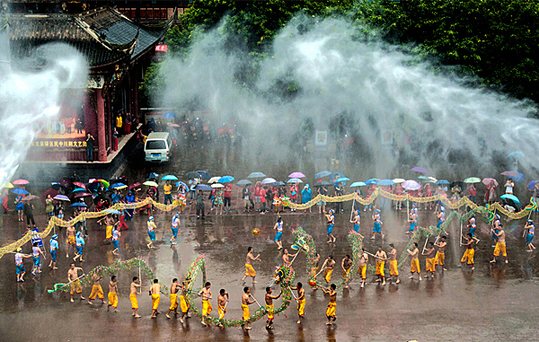 在成都龙泉驿洛带古镇,每年七月举行的水龙节已是盛行已久的客家风俗之一。