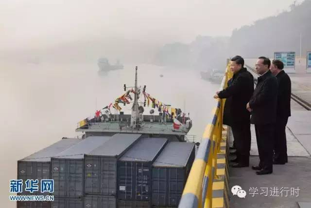 2016年1月4日至6日,中共中央总书记、国家主席、中央军委主席习近平在重庆调研。这是1月4日下午,习近平在重庆两江新区果园港码头视察长江航运和港口装卸作业。新华社记者兰红光摄