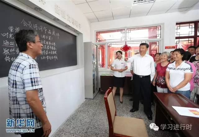 2016年7月28日,中共中央总书记、国家主席、中央军委主席习近平到河北唐山市调研考察。这是习近平在唐山市祥富里社区文化大讲堂观摩诗歌讲座。新华社记者兰红光摄