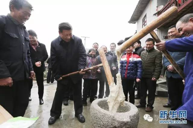 2016年2月1日至3日,中共中央总书记、国家主席、中央军委主席习近平来到江西,看望慰问广大干部群众和驻赣部队。这是2月2日,习近平在井冈山市茅坪乡神山村同村民一起打糍粑。新华社记者兰红光摄