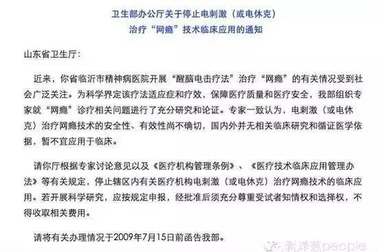 而一向以戒除“网瘾”为标签的杨永信的“网戒中心”,其实早在2009年就收到了来自山东省卫生厅的一份关于停止电刺激(或电休克)治疗“网瘾”技术临床应用的通知。但事实证明,这些年他们并未停止这项“事业”,而是换汤不换药地继续着,甚至还在今年迎来了他们中心的十周年,这十周年的节骨眼上,自然也迎来了媒体的再次关注。