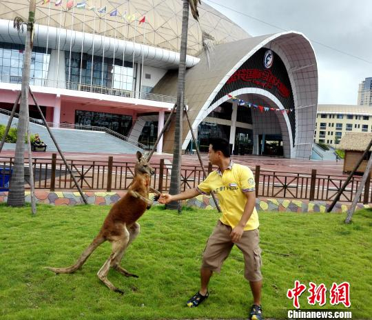 中新网厦门8月17日电 (记者 杨伏山)7只来自澳大利亚的国宝动物——赤大袋鼠,17日在厦门灵玲动物王国对外亮相,这群拳脚功夫和弹跳力惊人的“武林高手”,在训练时展现出的萌劲,让人忍俊不禁。