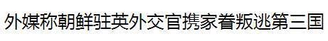 据英国和韩国媒体报道,叛逃外交官是朝鲜驻英国大使馆公使太勇浩,系朝鲜叛逃外交官中的最高级别。