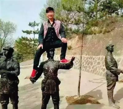在吴起县胜利山景区内,攀爬红军雕塑照相,被其他游客拍照记录后在网上传出,引起公众广泛谴责,造成严重社会不良影响。
