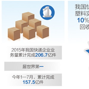 随着电子商务迅速发展及快递业与制造业、服务业的逐渐融合,2015年全年,我国快递企业业务量累计完成206.7亿件,稳居世界第一。今年1—7月,我国快递企业又累计完成157.5亿件的业务量。