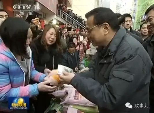 那时正值农历年底,在市场里,一位摊主请总理品尝水果和糖,李克强掏钱给他,风趣地说,那我要给你钱,糖果很甜,祝福大家过一个“甜年”。
