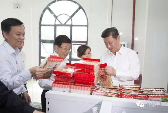 习近平拿起一包“沙琪玛”,查看保质期,并问道:“这个有日期没有?”服务员回答:“有的,绝对有。2015年的2月12日生产的。”