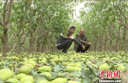 图为民众查看遭受冰雹灾害的红枣。 宋勇 摄