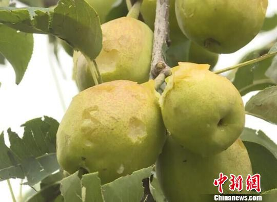 图为遭遇冰雹被打坏的香梨。 马良栋 摄