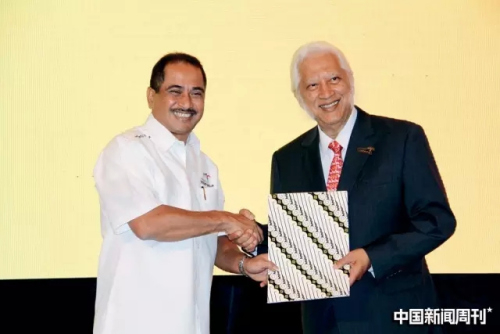 4月28日,印尼旅游部在雅加达举行的全国旅游协调大会上,任命印尼《国际日报》董事长熊德龙(右)为印尼-中国旅游亲善大使。印尼旅游部长阿里夫(左)给熊德龙颁发亲善大使证书和纪念品。图|中新