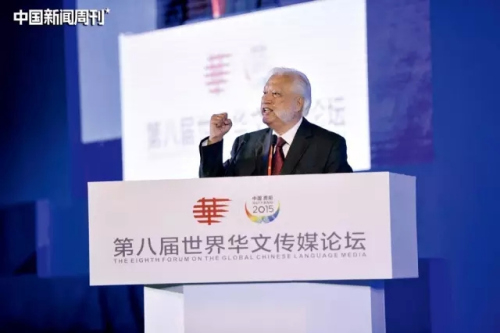 2015年8月22日,海外媒体代表印尼《国际日报》报业集团董事长熊德龙在开幕式上致辞。当日,第八届世界华文传媒论坛在贵州省贵阳市开幕,来自5大洲60多个国家和地区的400余位海外华文媒体代表与会。图|中新