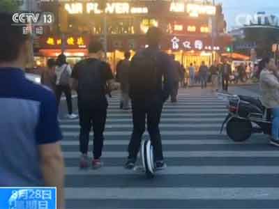 央视记者 盛瑾瑜:通过身体的前倾后移,达到人和车子的重心平衡,来控制前进的方向。但是如果真到了大路上,任何外力都有可能打破这样的平衡。