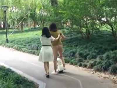 央视记者 盛瑾瑜:电动滑板车不再需要人们用脚,双脚可以放在踏板之上,但是速度也要比自行车快很多。一旦遇到崎岖不平的路面,就特别容易发生翻车的危险。