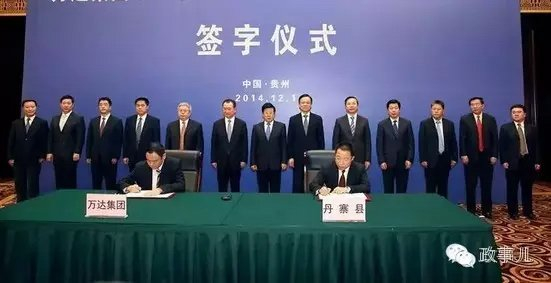 2014年12月1日,时任贵州省委书记赵克志、时任省长陈敏尔与王健林一起出席了《万达集团对口帮扶丹寨整县脱贫行动协议》签字仪式。