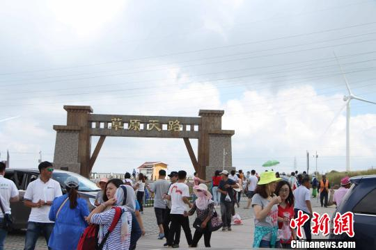 记者一行驱车行驶在“草原天路”上,眼前的情景和三个月前大不相同。在高速公路野狐岭出口处,只见一辆辆来自全国各地的车辆排起了长长的队伍。游客来自北京、天津、河北、山西、山东、江苏等地,其中以北京、天津、河北车辆较多。